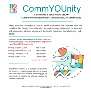 Sessions are open to adult survivors in Howard County. All sessions will be held virtually.To RSVP for December 14, 2025: Click here!